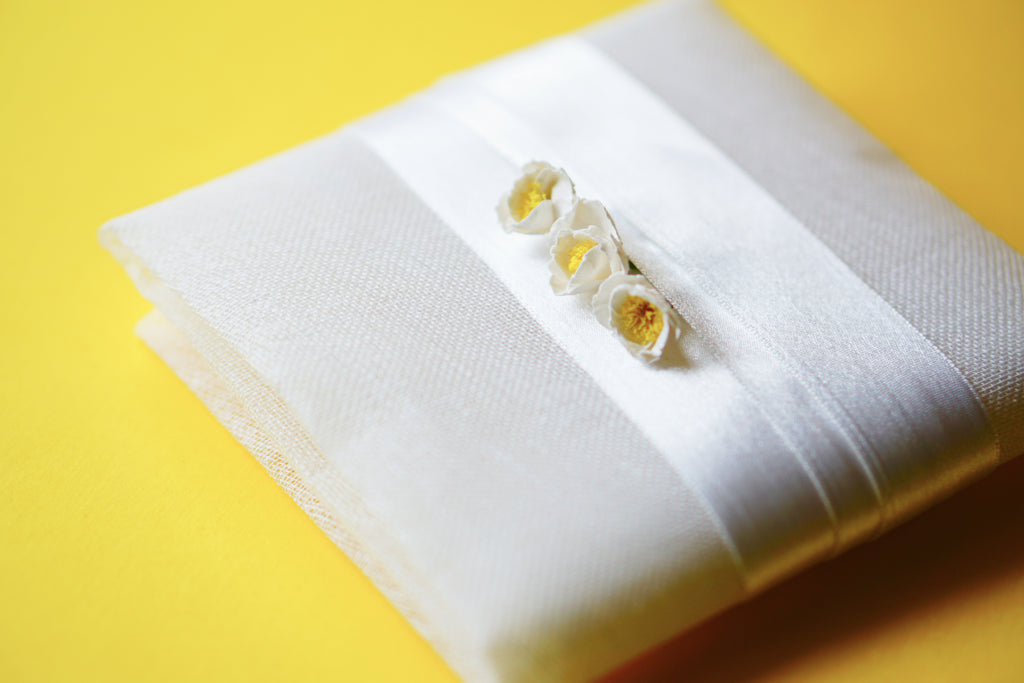 Μπομπονιέρα γάμου λευκός φάκελος με χαμομήλι και σατέν κορδέλα